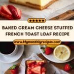 This Cream Cheese Stuffed French Toast Loaf Recipe isn’t just about taste — it’s about creating a sensory experience with lovely textures, aromas, and a beautiful golden color that looks stunning on the table. The best part? It’s versatile and easy to customize. Whether you want to skip the macerated strawberries or add a dusting of powdered sugar, it always turns out wonderfully. Because you’re baking it in a loaf form, it feels like a cross between bread pudding and cheesecake, but without any complicated baking skills required.