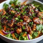Enjoy a vibrant and satisfying Ultimate Crunchy Asian Sesame Chicken Salad featuring tender roasted chicken breasts, crisp cabbage, fresh greens, and a luscious almond sesame dressing. This salad balances savory, sweet, and tangy flavors with delightful texture from shredded vegetables, toasted almonds, and sesame seeds, making it a perfect healthy meal for lunch or dinner.